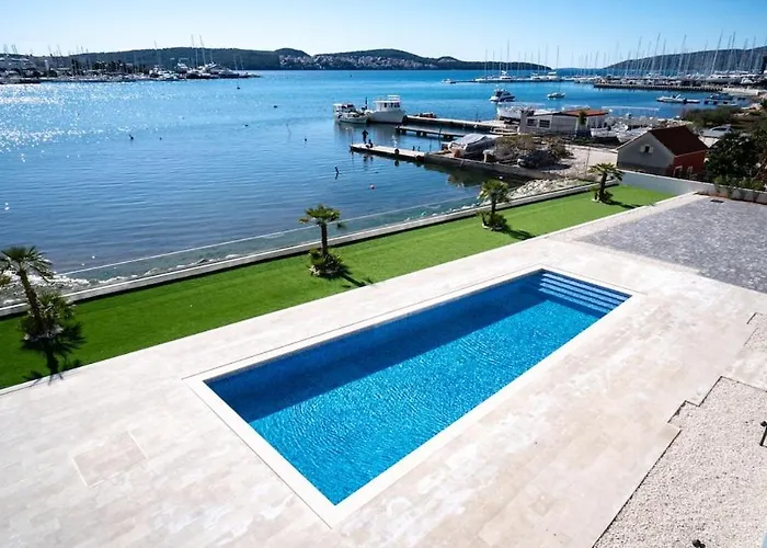 El Luxury Apartment With Heated Pool Trogir está situado a 5 minutos a pie de la Tienda Marisa y tiene vistas al mar. El Puerto deportivo de Trogir se encuentra al alcance de del apartamento de 130 m², mientras que el Centro Histórico de Trogir se encuentra a 1 km.